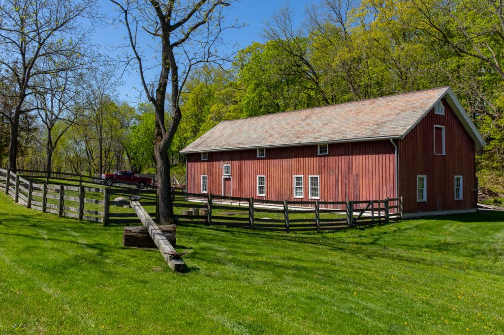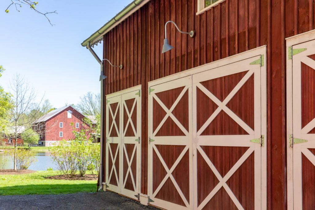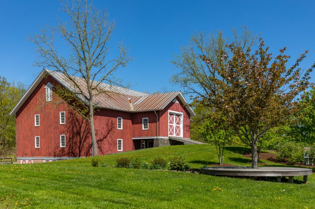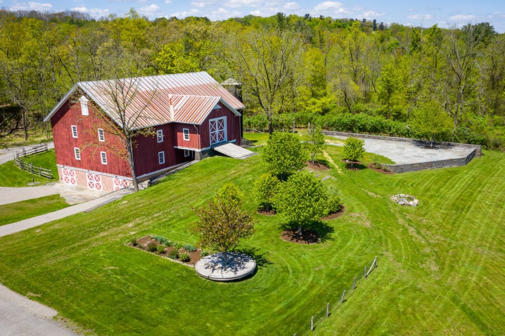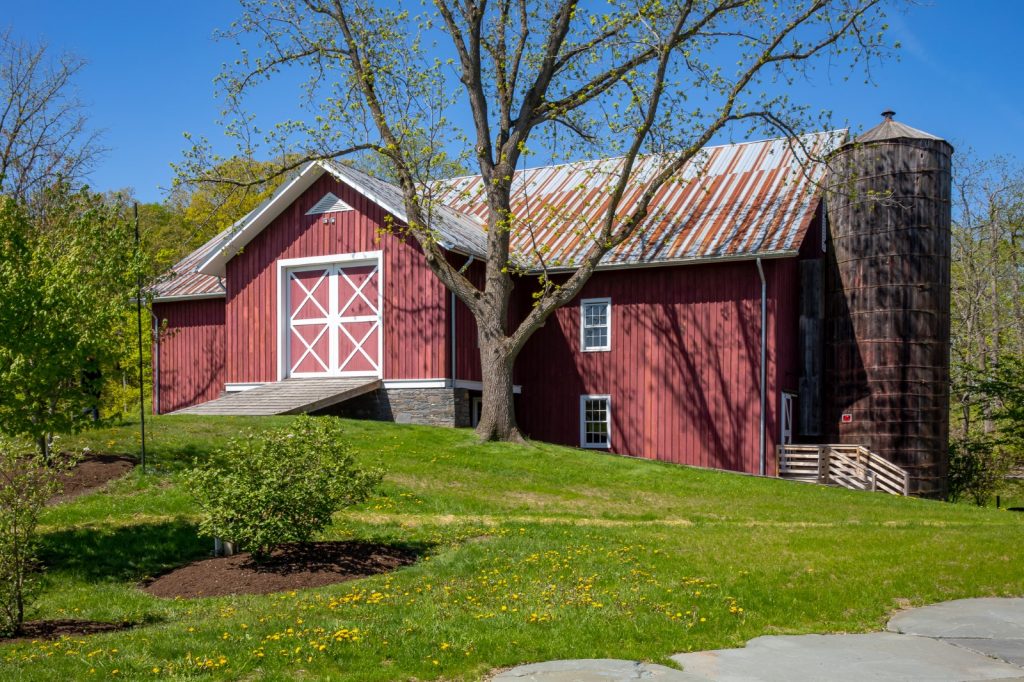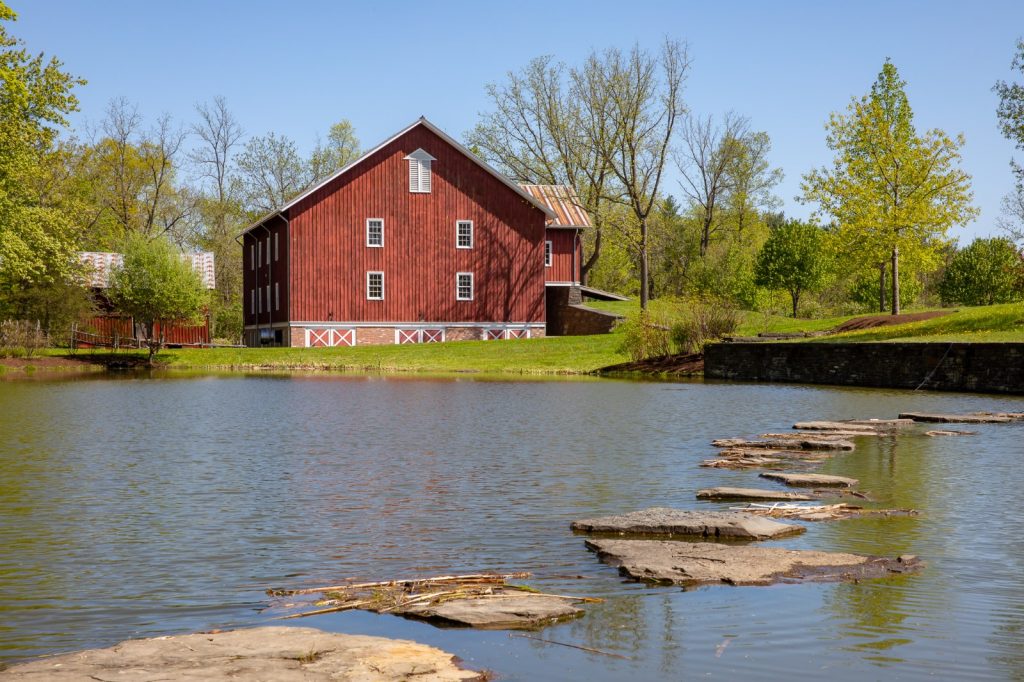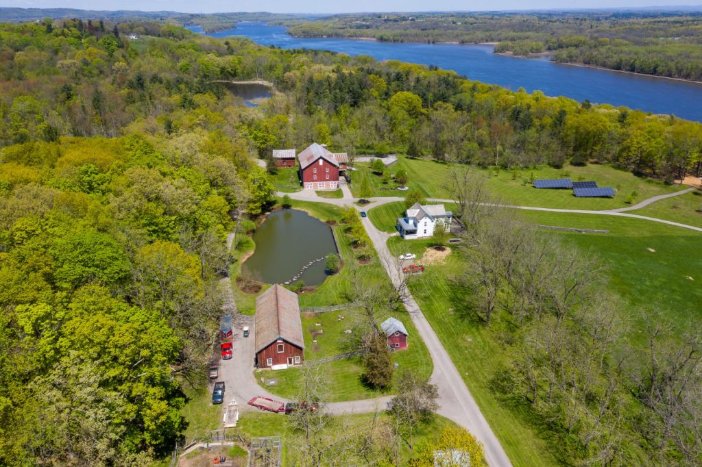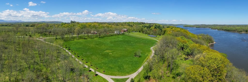 Meadow Ridge Farm was founded in the late 19th century by a Manhattan-based financier who by water up the Hudson River to summer at the property. Covering 100 acres alongside the Hudson, with views of the Berkshire and Catskill mountain ranges that define the Hudson Valley, the farm features meadows of hay, woods of black walnut, oak and pine trees, landscaped natural streams and a pond. Its gardens and allées of red maple trees give the farm four seasons of brilliant color and natural charm.